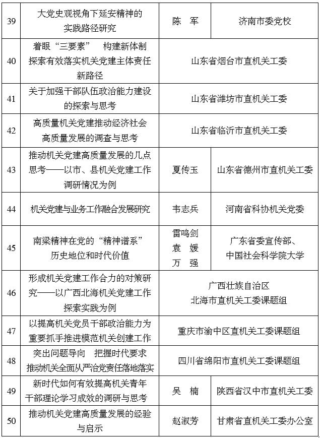 為慶祝中國共產黨成立100周年,深入總結和學習運用百年來機關黨建的歷史經驗,準確把握機關黨建工作特點規律,進一步做好機關黨建理論研究與交流工作,機關黨建研究雜志社自2021年4月起開展了理論征文活動。截至活動結束,共收到征文400余篇。按照公開、公平、公正原則,雜志社組織評審組經過初評和終評兩個環節對征文進行了評定。根據評審情況,評出50篇優秀理論征文,名單如下。